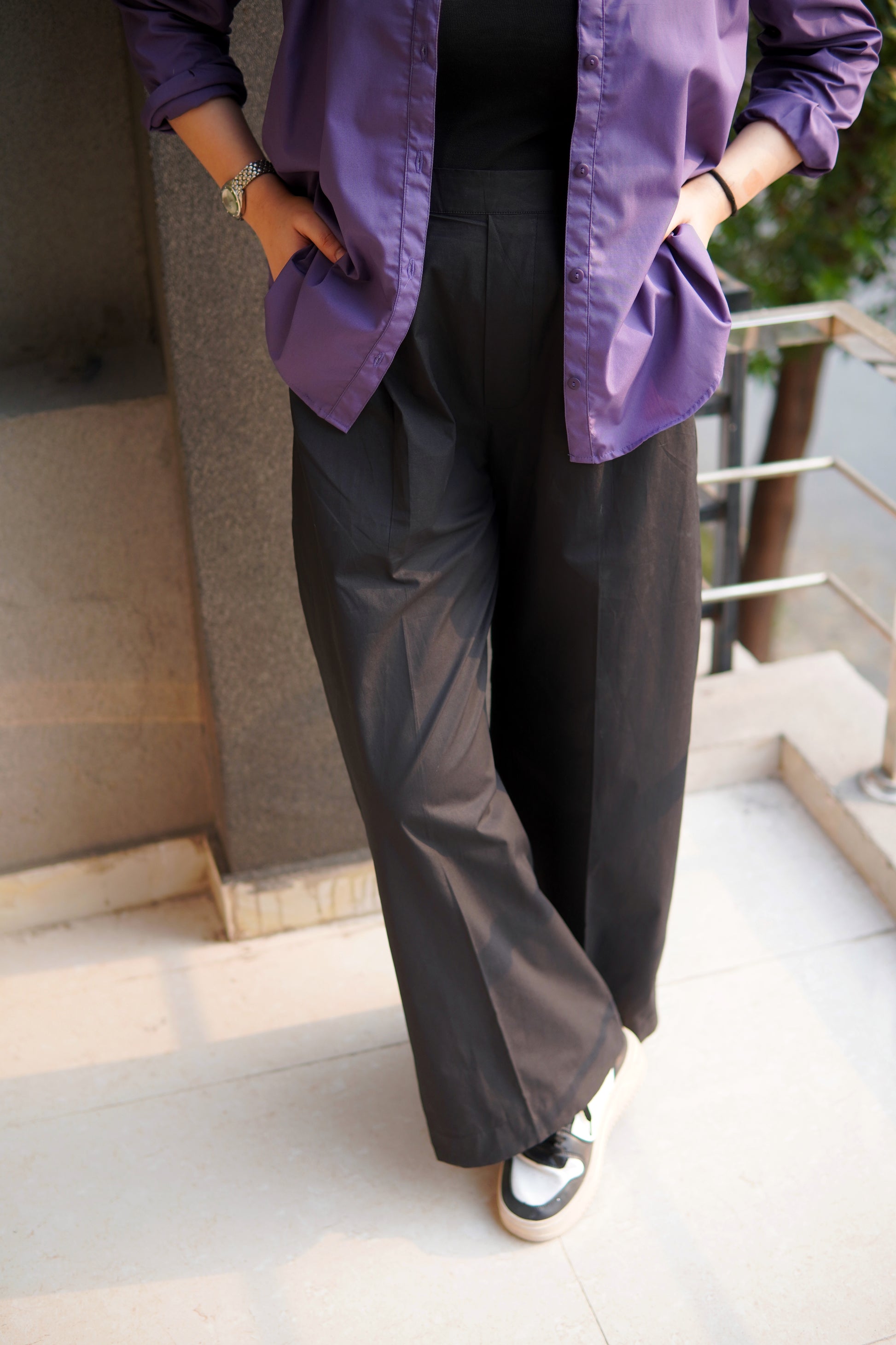 Black pleated Pants - korean Style